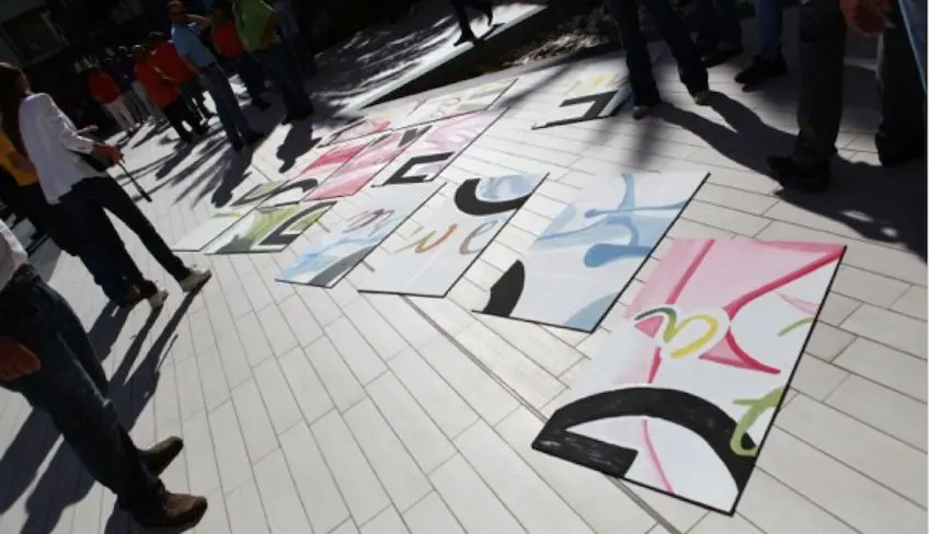 Schließlich werden alle Leinwände zu einem einzigen kollektiven Kunstwerk im Stil der "Pixelmalerei" zusammengefasst. Wer weiß, was sich daraus ergibt? Vielleicht das Firmenlogo, ein weltweit bekanntes Gemälde oder ein neues und vollständig originelles Bild.