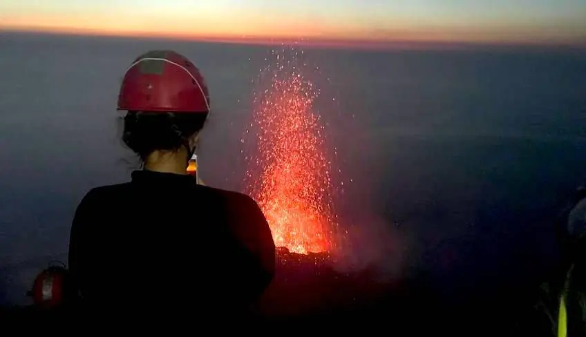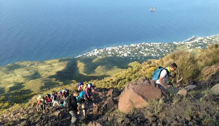 Die Exkursion beginnt 3 Stunden vor Sonnenuntergang auf dem Platz der Kirche San Vincenzo und dauert etwa 2,5 -3 Stunden bis ihr den Gipfel erreichen werdet. Während des Aufstiegs könnt ihr die typisch mediterrane Flora bewundern, die euch mit ihren vielseitigen Farbnuancen begeistern wird: von tiefen Grün- bis zu warmen Farbtönen der Lava, die im Laufe der Jahre eins mit dem natürlichen Kontext der Insel geworden sind. Alle 30 Minuten ist eine Pause geplant, in der ihr euch ausruhen und die Aussicht genießen könnt. Ihr werdet begeistert sein, von den Naturelementen, die ineinander verschwimmen: Himmel, Erde, Wasser und Feuer! Sobald ihr den Gipfel erreicht habt, könnt ihr die Explosionen des Vulkans in der Dunkelheit der Nacht bestaunen. Je nach Vulkanaktivität werdet ihr ca. 1 Stunde auf dem Gipfel des Vulkans verbringen. Als Zuschauer in der ersten Reihe könnt ihr eines der schönsten und aufregendsten Naturspektakel der Welt erleben. Zurück geht es über die "Rina Grande", einem steilen und sandigen Abstieg. Nach etwa 1,5 Stunden werdet ihr wieder am Ausgangspunkt sein.