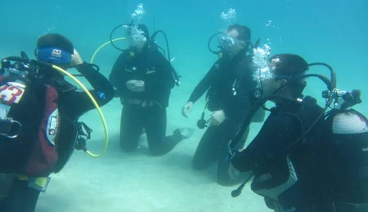 - Das Diving Center wird den Schülern das Unterrichtsmaterial bereit stellen und die gesamte Ausrüstung für die Tauchgänge. Am Ende des Kurses erhalten die Schüler, die die Prüfung bestehen, den Tauchschein ISDA.
