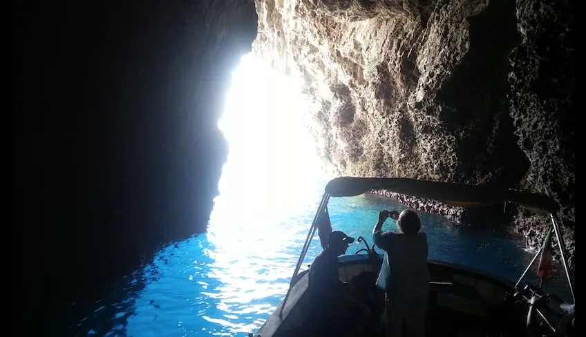 Departing from Giaridni Naxos, you will head straight away to the Grotta Azzurra, called as such for the bright blue waters in the grotto.