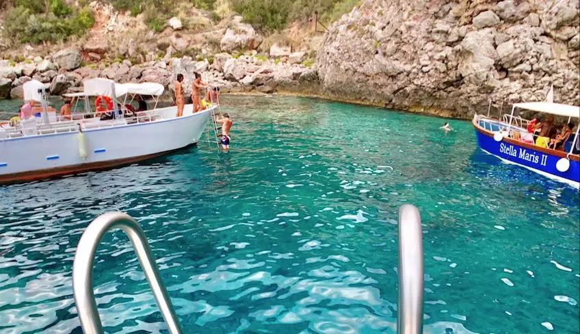 You will then visit the Scoglio del Fico d'India and the Syrens' Bay. During the excursion the captain will tell you the stories of this magical places and will be able to feed all of your curiosities. You will then stop at the Isola Bella, you will be able to swim and enjoy the sea with a but of snorkeling. The Isola Bella is an island/peninsula and depending on the tides it is connected to the land by a thin strip of sand. The beauty of this place is enhanced by the wide variety of mediterranean and tropical plants that you can find.