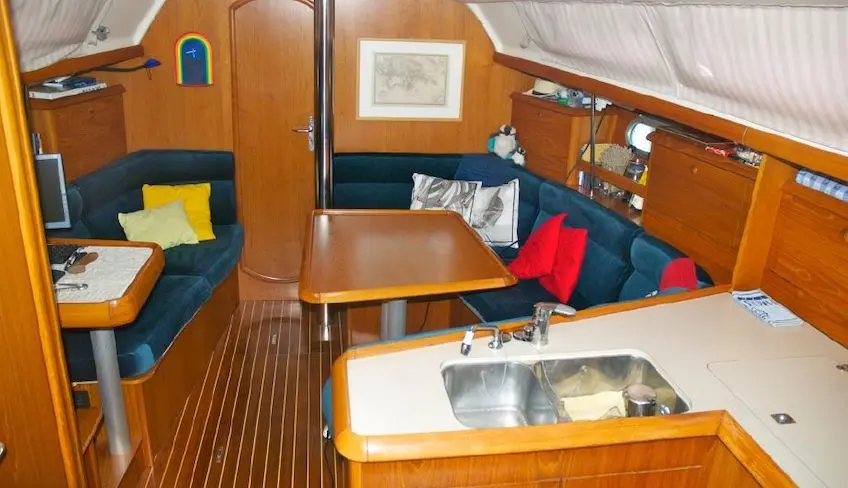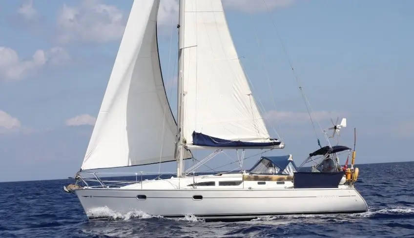 The boat is a Janneau Sun Odyssey 34.2 (2 double cabins and 1 bathroom)