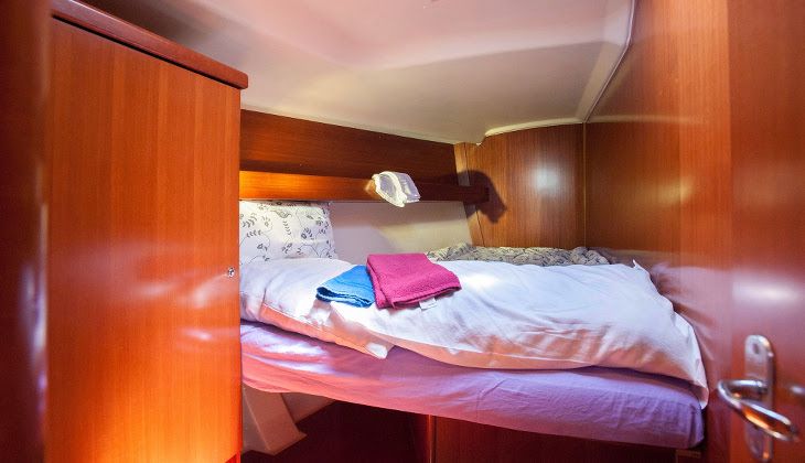 - Dufour 455 Grand Large: equipped with 4 double-bed cabins and 3 bathrooms for 8 people. 2 additional guests can use the dining room. Total: 10 guests onboard.The boat will be for your exclusive use. It will therefore be possible to adapt the itinerary according to your preferences.