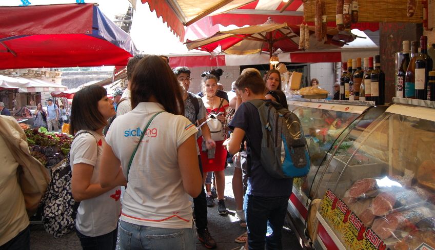 - Tasting of street food (arancino, cipollina, olives, horsemeat dish or fried fish); local sweets (Sicilian cannolo or granita); non-alcoholic drink with Seltz at the "chiosco", zibibbo.