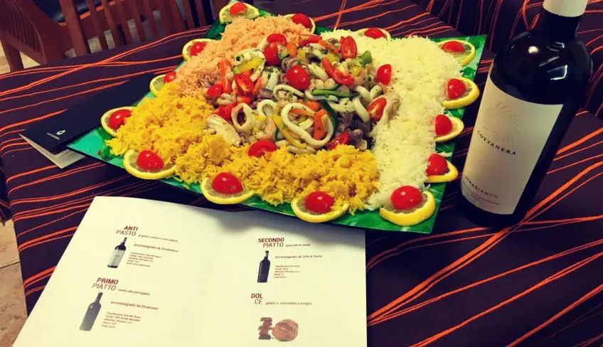 - Typical Sicilian appetizers, fruit or dessert, 2 wines and drinks.