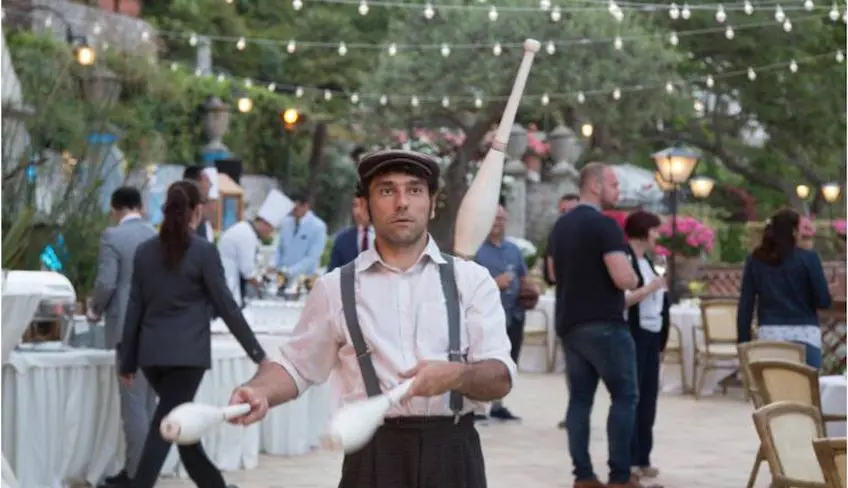 - Creation, planning, rehearsals, direction and coordination. Film maker. Sound system with microphone. Lights. Audio and video technicians. 6 artists, choose between: trampoline artists, caricaturists, soothsayers, scammers, jugglers, shoeshiners, traditional ballerinas, actors, presentors, etc. Opera singer. Set materials and accessories for the artists. Scene-setting elements: Italian flag, lights, wicker baskets etc. Small stage for the opera singer.