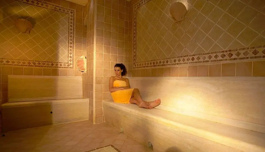 - Entrance to the hotel spa, which includes a Turkish bath, swimming pool and Jacuzzi.