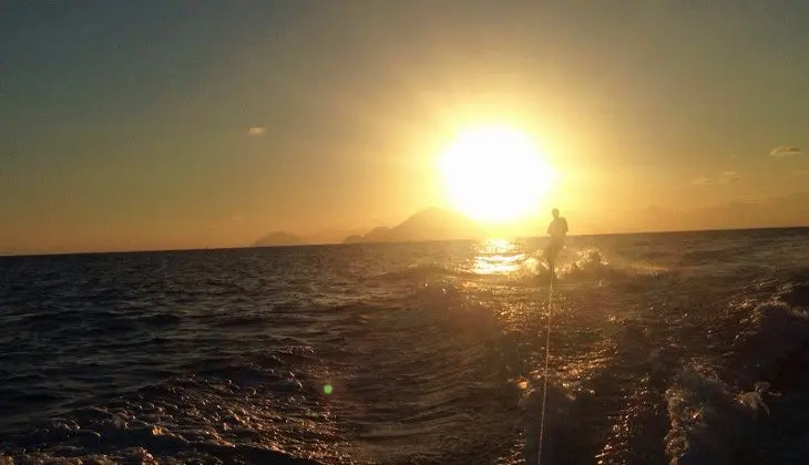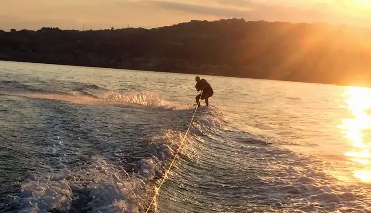 What will I do exactly? You will be transported by motorboat suitable for this type of discipline and, with the help of the waves created from the boat, you can perform jumps and stunts. With a rocker onto which you hold, and a board for your feet, you will become the star of a sport that has become a must for every summer. -