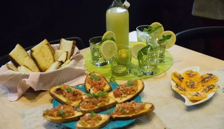 Avrete modo di cimentarvi nella preparazione di un Menù Completo con tre diverse portate di piatti tipici siciliani, dalla caponata di melanzane, ai cavatelli fatti a mano conditi con sugo di pomodoro fresco, dalla pasta con le sarde, agli involtini di spatola (pesce locale) con uvetta e pinoli, fino alle mandorle caramellate alla cannella e cacao.