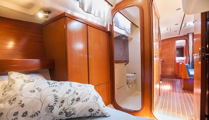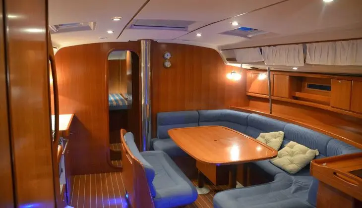 - Dufour 455 Grand Large: dotata di 4 cabine matrimoniali e 3 bagni per 8 persone. 2 ulteriori ospiti possono usufruire della dinette. Totale: 10 ospiti a bordo.
