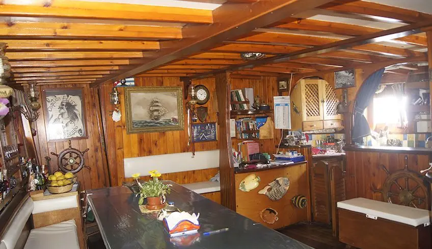 На борту судна располагаются 6 двухместных кают с двухспальной кроватью (возможно установить третью кровать).