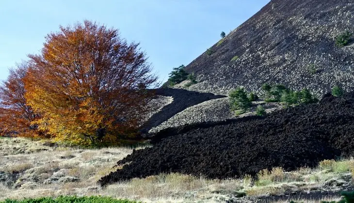 На мини-автобусе мы поедем по дороге «Мареневе» до склона Этна Норд в Пьяно Провенцана. Во время поездки вы сможете заметить, как изменяется лес в зависимости от высоты. Только на этом склоне Этны вы сможете увидеть березовый лес (на высоте 1600 м – 1760м над уровнем моря). Здесь мы остановимся и посетим Гротта делла Неве - туннель из лавы, который выполнял в древние времена важную функцию, связанную с хранением и продажей снега с Этны. После посещения пещеры мы отправимся по тропинке к кратерам извержения вулкана 1865 года и посетим гору Санторини – разлом, образовавшийся в лесах, так же известный как «боттоньера» (ряд пуговиц), сформированный из ряда кратеров и застывшего потока лавы. После экскурсии вы поедите до Пьяно ди Провенцана, расположенного на высоте 1820 метров по новой дороге, построенной после разрушительного извержения 2002 года. На обратном пути до выезда на автостраду, соединяющую Форнаццо и Лингваглосса, мы посетим винодельню Gambinoи попробуем вина Этны в паре с местными продуктами.